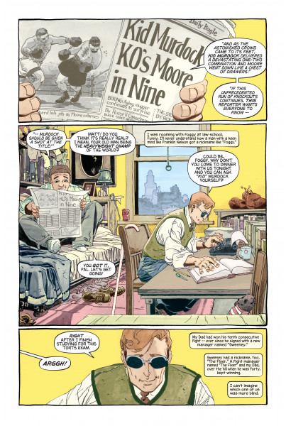 Matt Murdock revive sus primeros pasos como Daredevil, recordando a Karen Page y enfrentando sus dudas en los días del traje amarillo.